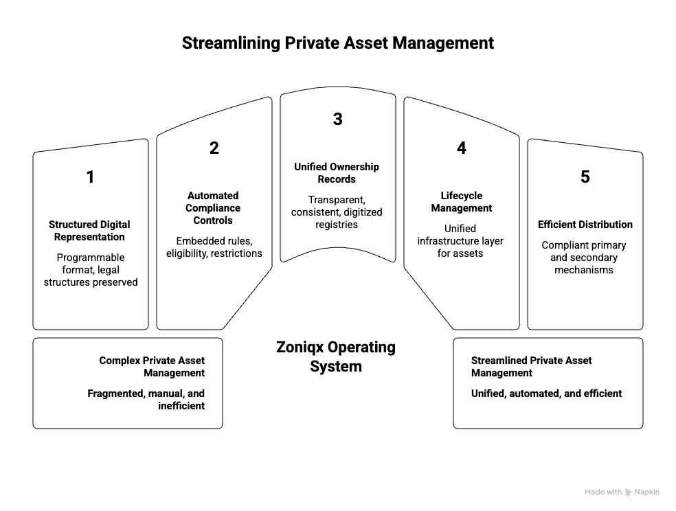 By unifying these processes, Zoniqx acts as the operating system that connects the lifecycle of private assets.
